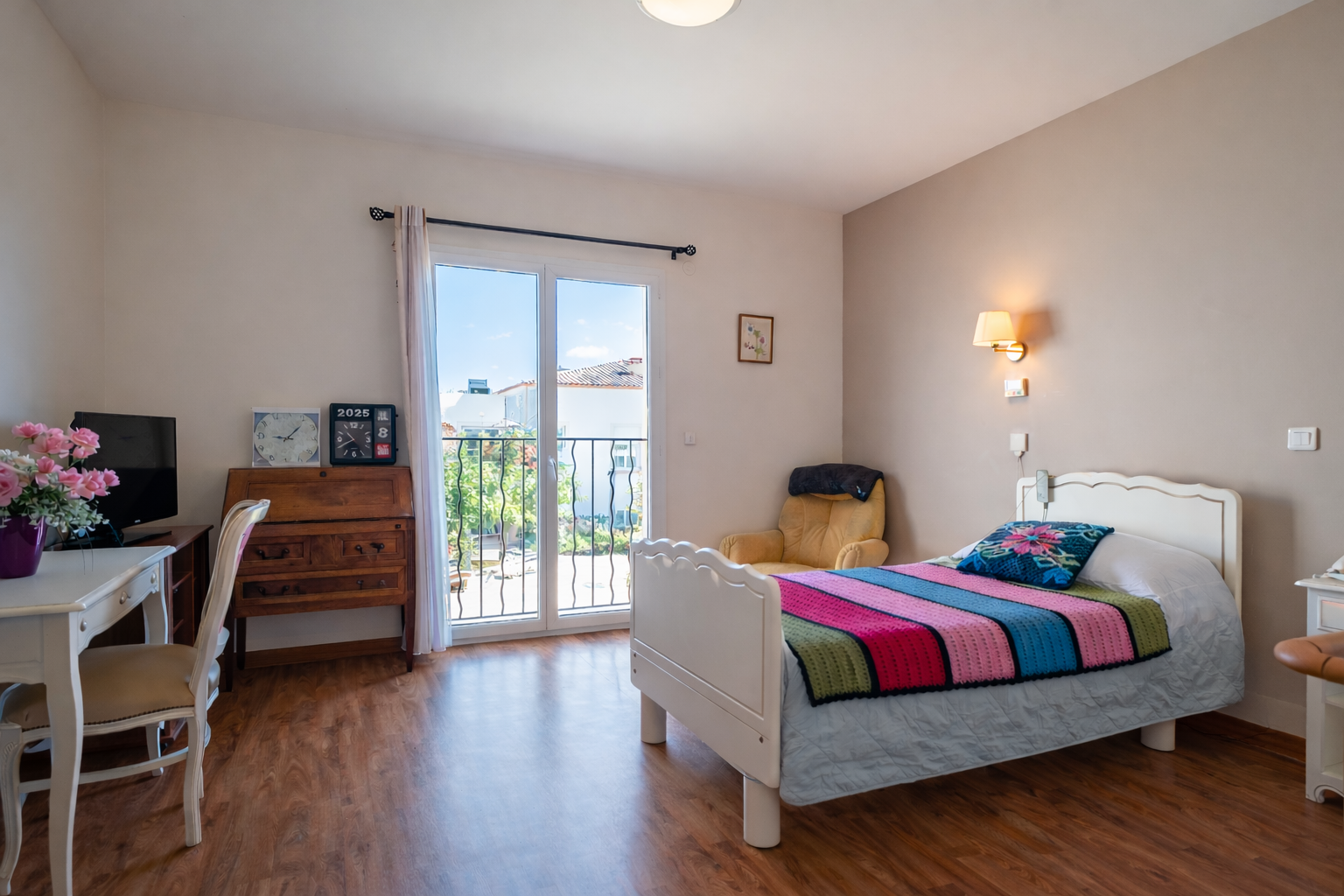 Nos chambres individuelles d’environ 25 m² allient confort et sécurité. Équipées d’une salle de bain privative et d’un mobilier médicalisé au design chaleureux, inspiré du domicile, elles offrent un cadre rassurant et élégant. Un système d’appel permet une assistance 24h/24 pour garantir une prise en charge rapide et sécurisée.